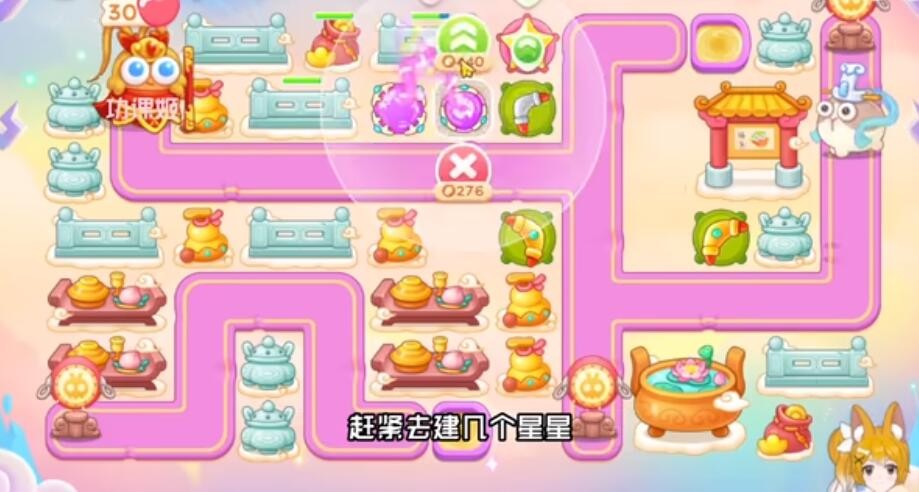 2、有金币后左边的魔法球升到二级,中间栅栏哪个先拆掉就在哪个位置建回旋镖。