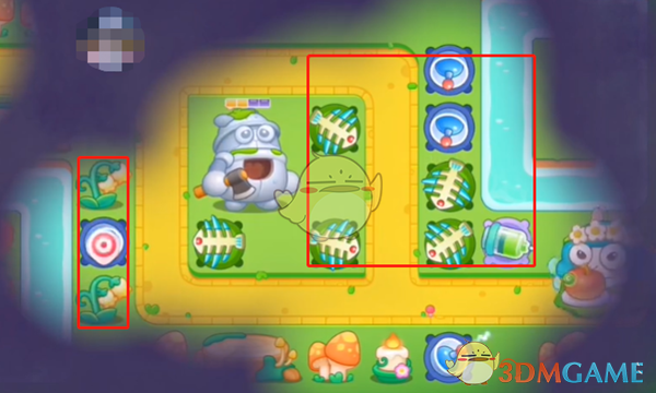 2、清理掉出口的道具,然后开始清理左侧的道具,这里推荐多放几个鱼骨,可以暂时眩晕住怪物,放个毒针增加伤害。
