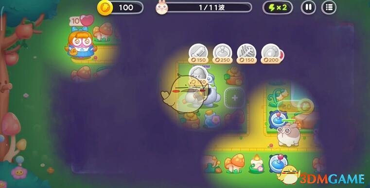 4、右侧建立基本防线就可以开始着手建立左侧的防线,中间有蘑菇就清掉,可以放炮台增加一点伤害,有道具及时清理就行。
