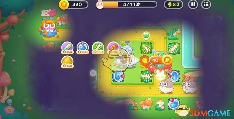 3、清理完大道具,就增加炮台数量增加伤害,魔法球也属于范围伤害,所以使用魔法球有钱就放。