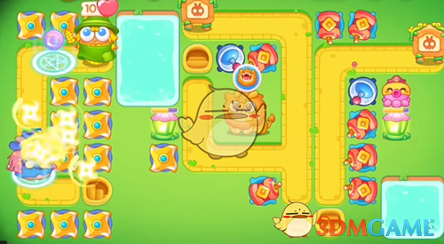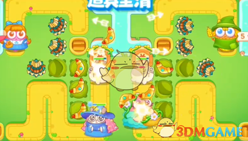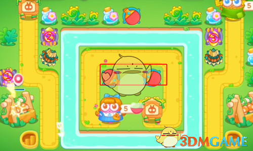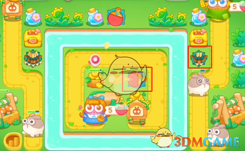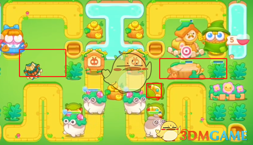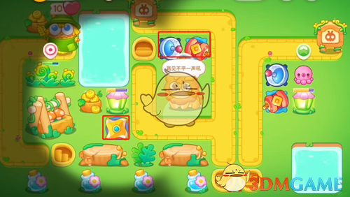 5、最后清理完障碍后,在空位上补上道具,怪物出口放上一个可以减速的毒针,大块头也会帮忙打,这样就可以过关了。