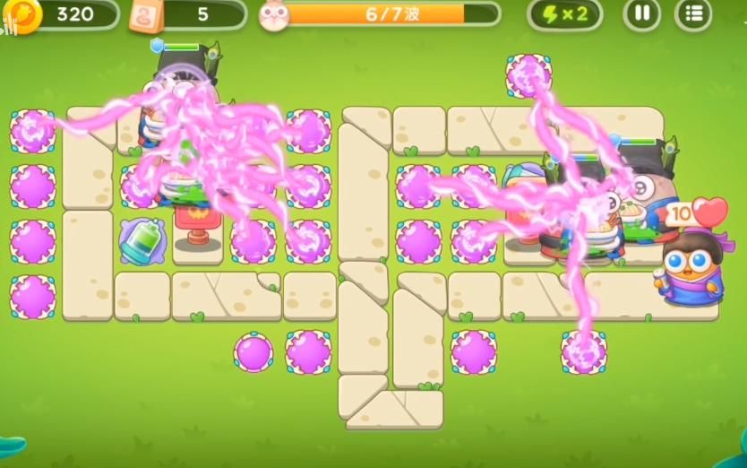 3、第1波就这样扛过去了,第2波我们还需要在中间增加魔法球来防守