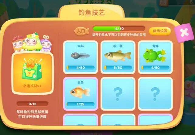 参与钓鱼可以提升钓鱼水平,越高的钓鱼水平越有机会钓到更多品种的鱼~钓到一定数量的鱼,就可以领取幸运福袋啦!打开幸运福袋将随机获得一款呆呆兔的装扮~