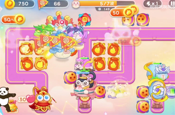 4、第五波的时候很考验我们的输出能力,我们尽量不开加速并且放置炮台的时候按下暂停进行放置,此时图中很多怪我们需要分期锁定进行攻击才能逐个击破。