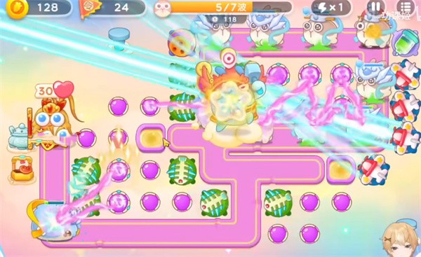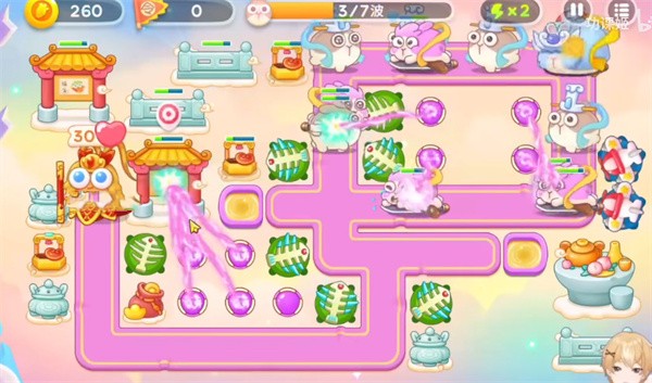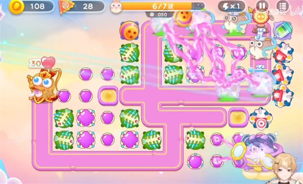 3、第三波开始我们的首要任务就是清除障碍物,多建造魔法球进行输出障碍物,优先将所有的天门进行清除然后攻击钱袋子进行攒钱。