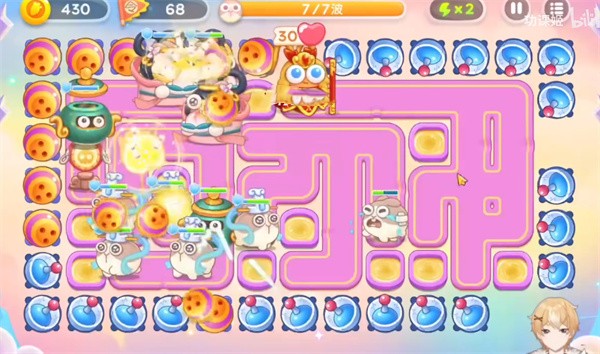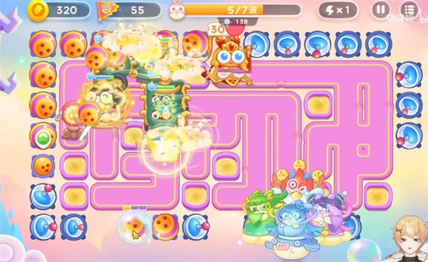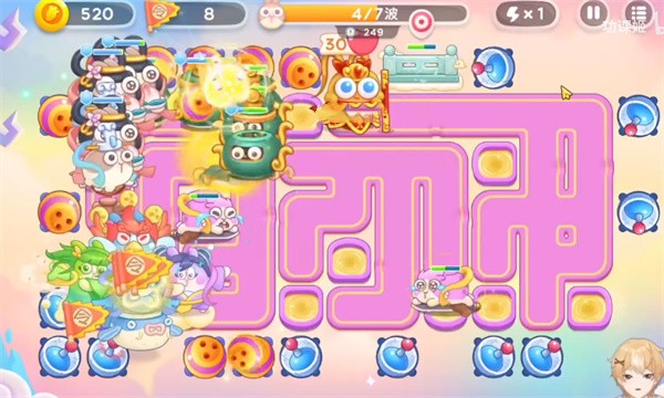 6、第六波没什么困难,唯一需要注意的就是风婆婆的乾坤袋,我们发现炮台被套住的时候优先进行清理。