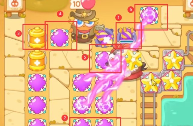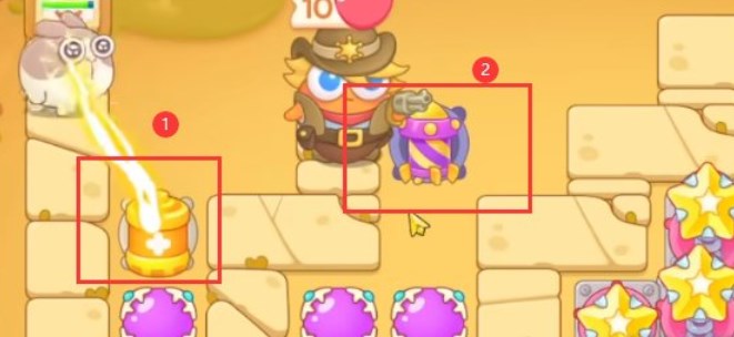 3、按照序号顺序放电池炮和火箭炮,升到三级,轨道上的道具需要手动移动清理道具哦。