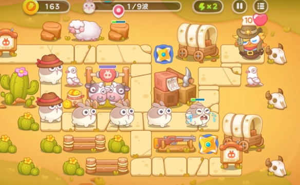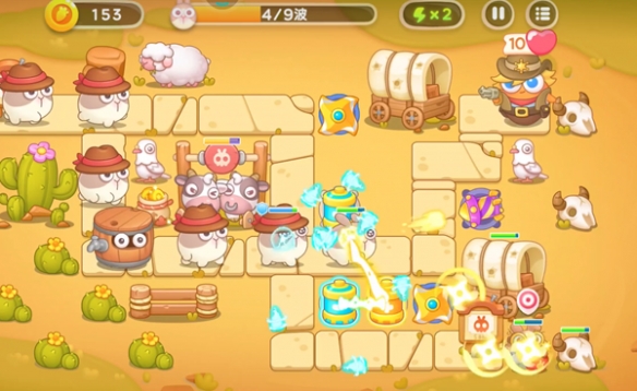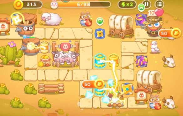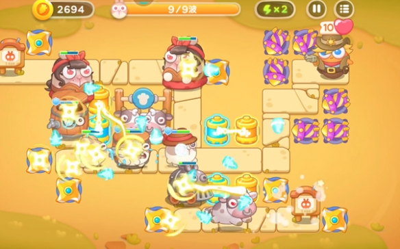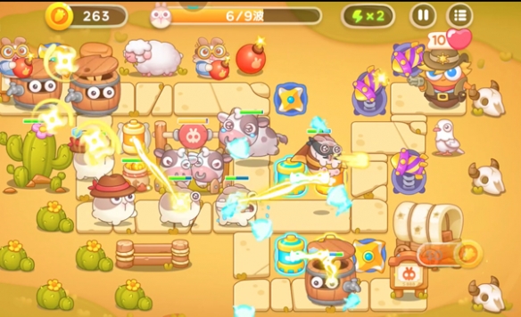 1、游戏开局前放置两个飞镖装置,下面的飞镖装置提前升级,在击败兔兔的同时利用空余时间消灭附近障碍物。