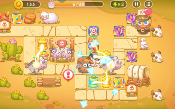 3、升级电池装置加强电疗输出,此时也将到达第5到6波的节奏,这时会出现一个炸弹兔,它的出现时机会显示“!”的警告(炸弹兔所丢下的诈弹不处理掉会毁害装置)。