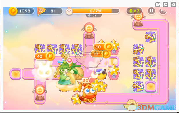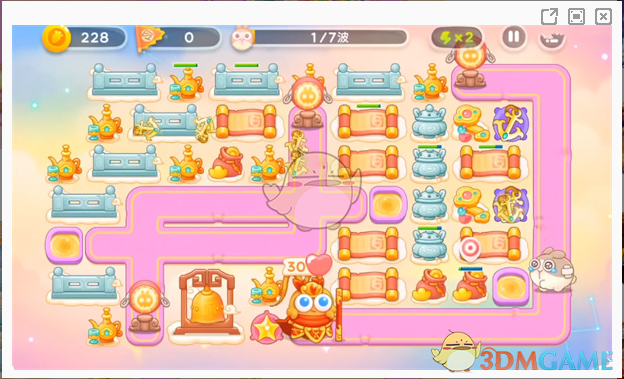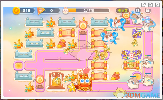 6、最后一波小怪的数量比较多而且血量偏厚,玩家按照下方的位置放置炮台进行输出即可。