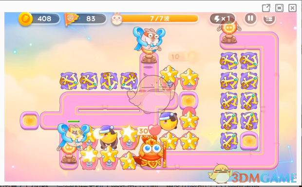 4、第五波继续放置船锚进行输出,在中间区域放置星星炮台进行范围伤害,锁定风婆婆进行输出刷取令旗。