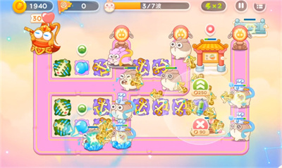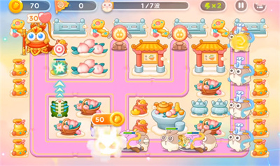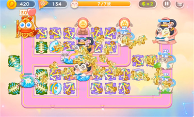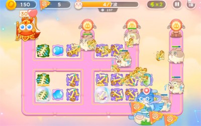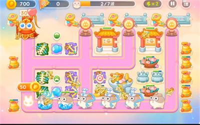 2.有了一定的金币之后全部放鱼骨,夹杂几个冰霜炮台。