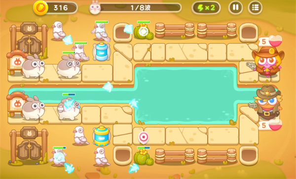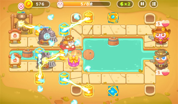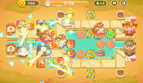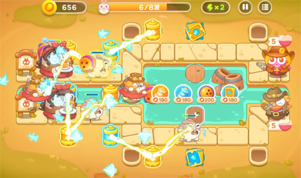 3、第五波开始小怪压力增加,玩家继续增加电池炮台的数量。