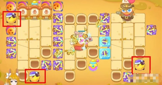 2.钱袋周围道具打掉,继续放置船锚,再放毒气瓶,然后开启三个宝箱;