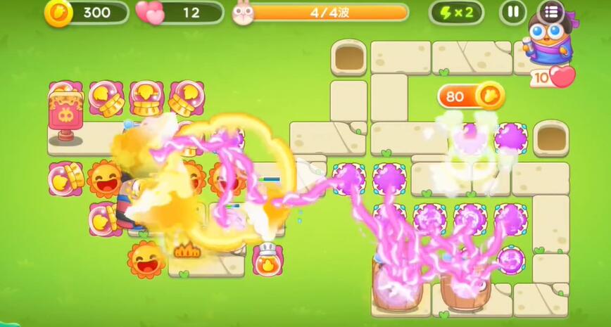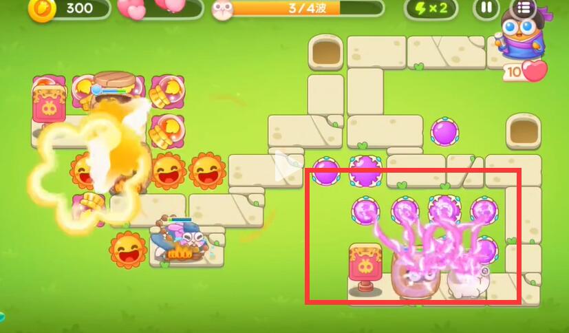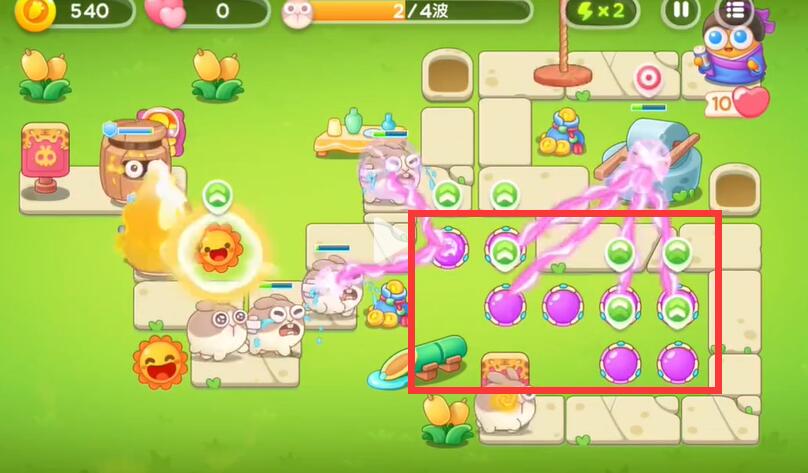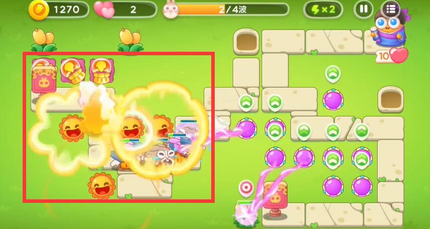 5、第三波下面的出口会出现兔子,魔法球会自动的对兔子进行攻击。