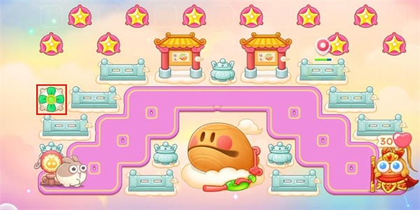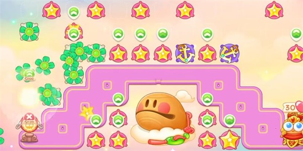 4、我们需要注意的是会有乘坐莲花的小怪出现,使用星星道具把它们全部赶走即可。