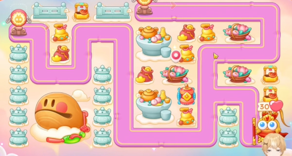 2、等有空位就继续补充鞭炮,然后不断的清理右边的道具。左上角的位置放上两个保龄球。