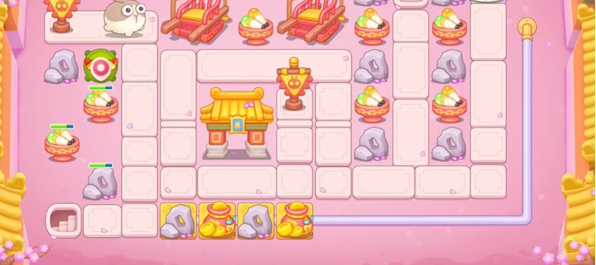 5、按照如下图所示的位置来摆放炮台即可通关。
