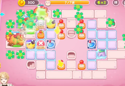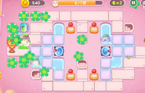 4、不断的升级出怪口周围的五叶草来增强火力,后面的炮台则是清理障碍物。