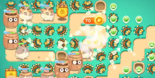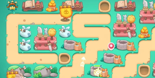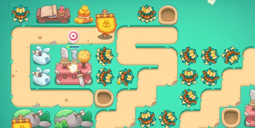 1、玩家开局放置弹弓炮台,抵御怪物同时也去清理障碍物。