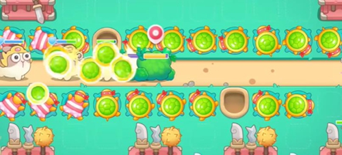 1、这关主要路径就是一条直线,玩家需要先使用乌龟炮台清理障碍物,从而获取更多的炮台位置。