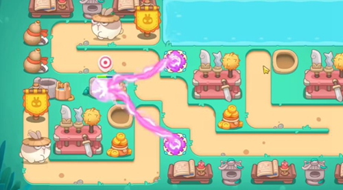 1、玩家进入游戏后先摆放好魔法球炮台清理障碍物。