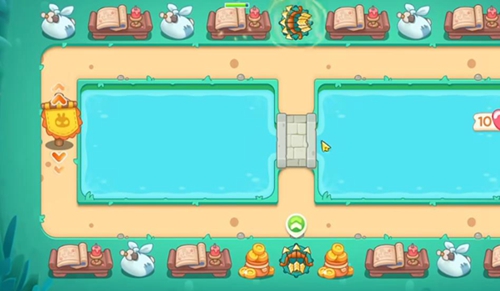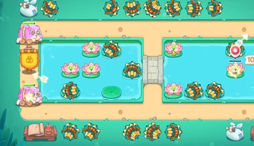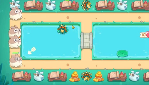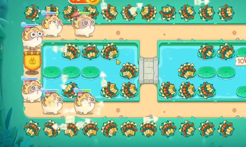 3、清理完周边障碍物后,玩家把弓箭炮台放在中间的荷叶上。