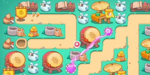 4、所有障碍物清理完成后玩家购买安放烟花炮台搭配着魔法球炮台攻击消灭所有敌人。