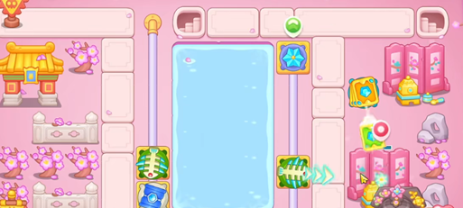 5、在萝卜附近放置鱼骨和卡牌,按照下图所示的位置摆放好炮塔即可。