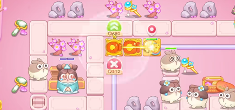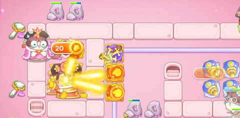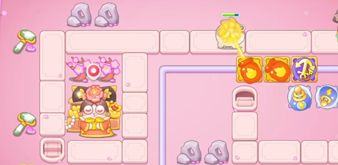 1、玩家在轨道上建造一个满级火瓶,来清理同侧轨道上的障碍物。