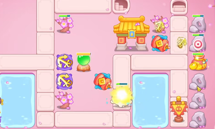 1、如图所示的位置放置一个鞭炮并升到满级,然后集中攻击中间障碍物。