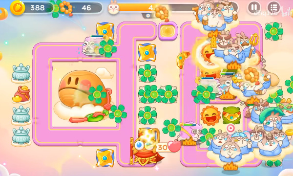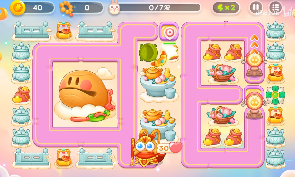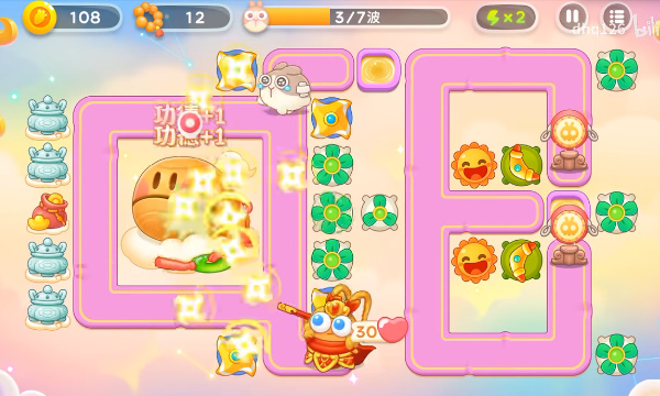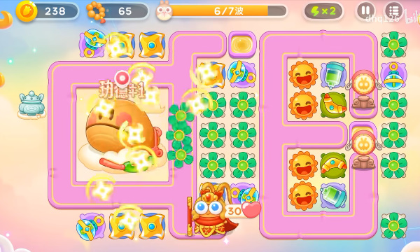 2、右边放上群攻的炮台清理兔子,左边的位置放上忍者镖打木鱼
