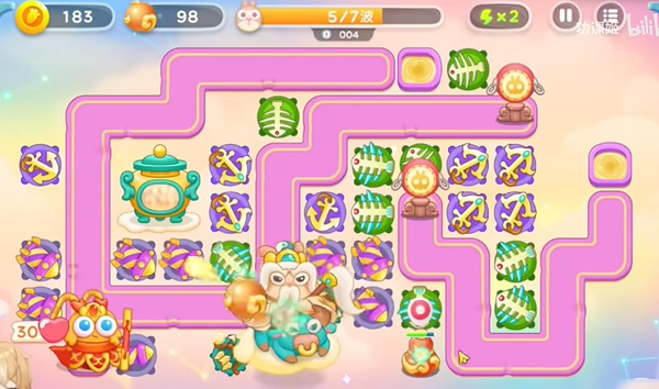 2、然后不断的建造船锚就可以,这个炮台主要就是打这个道具的。
