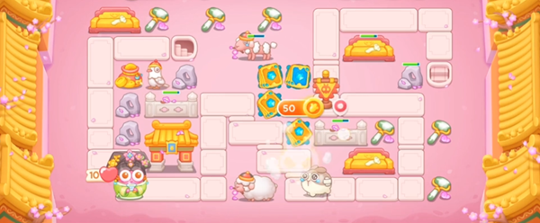 4、在左侧萝卜周围建造卡牌来防止漏怪。