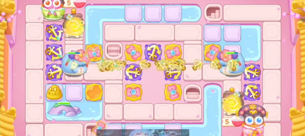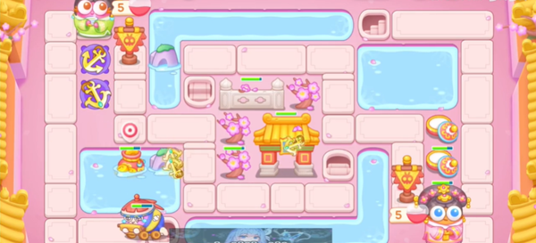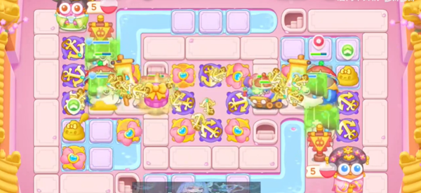 3、在地图中央补充船锚和蝴蝶结,全部升级来提升火力。