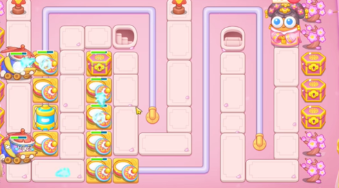 3、接着在地图中央的拐角建造把元宝压低怪物的血限,右侧建造冰桶来打打控制。