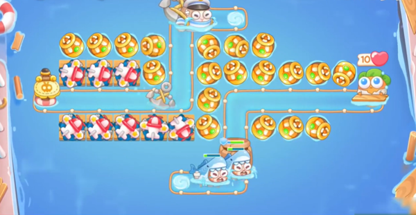 1、按照下图所示的位置建造3个鱼雷并且升级到满级,来清理怪物和障碍。