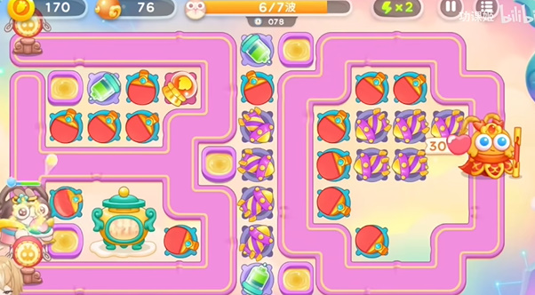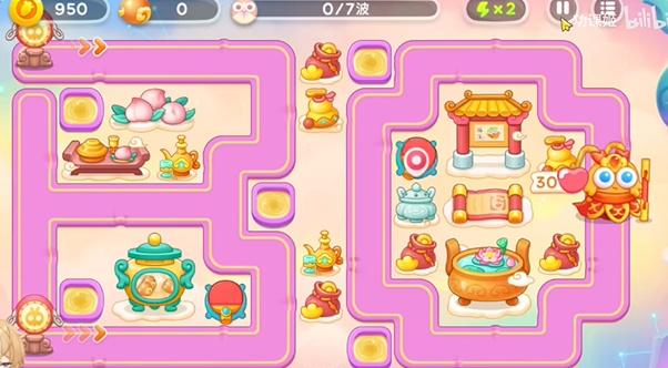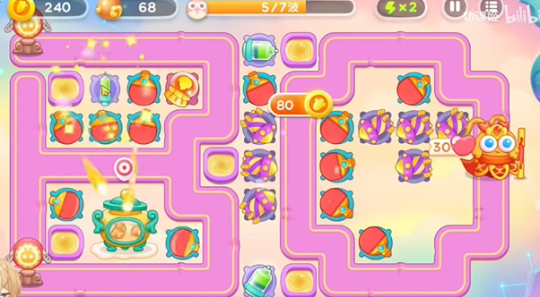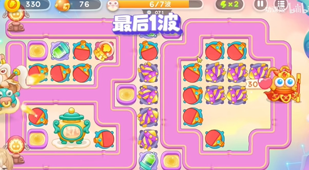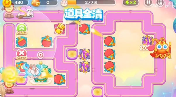 2、请出来位置之后要放上一个导弹,因为会有飞行兔子。玩家基本上可以在第二波就可以拿到道具全清。