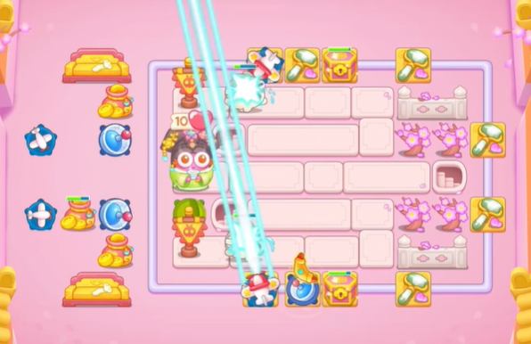 4、我们继续在地图右侧补充回旋镖和雷达,来进一步增强队伍当中的输出火力,可以升级冰花来提升效率。
