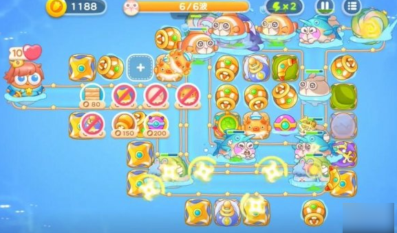 保卫萝卜4海的闺女50关共有两个场景地图,主要是需要建造水雷、鸡蛋、乌龟、船锚等。