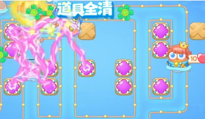 6、搭建紫电炮台,进行升级,间接搭建五叶草炮台,清理所有的障碍物。