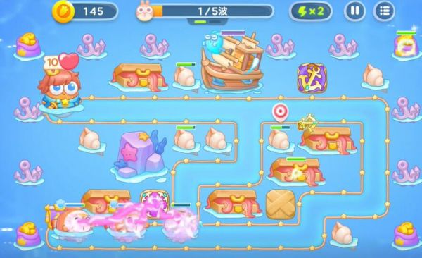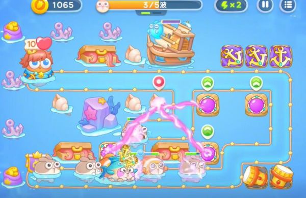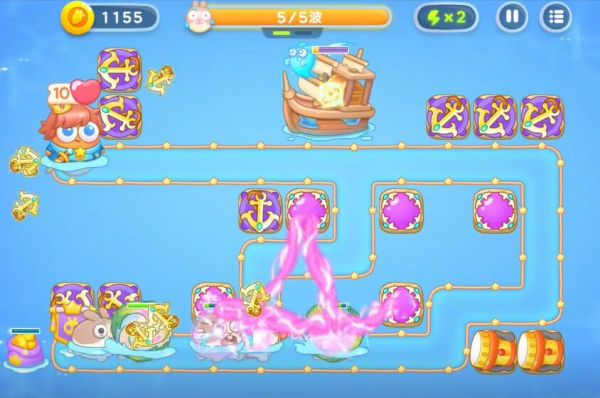 4、制作更多的船锚整理掉全地图的障碍物,随后打败一切的兔子,进入下一轮的塔防。