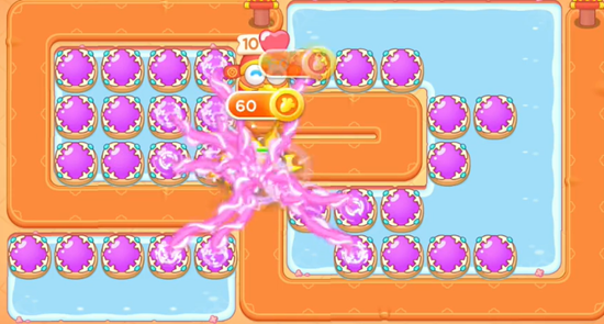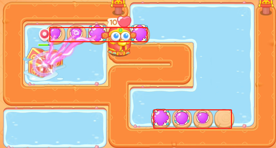 2、确保安全的情况下优先打掉水中的道具获得位置,然后继续放置魔法球,这里魔法球可以先不用满级,二级够用。