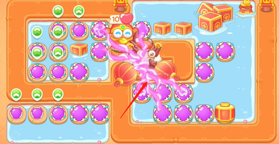 3、BOSS会在右边出来,所以我们优先强化右边路线上的魔法球,BOSS出来之后我们就先不要清理道具了。