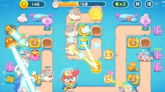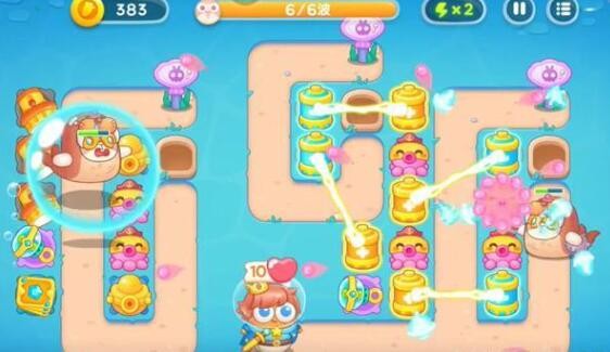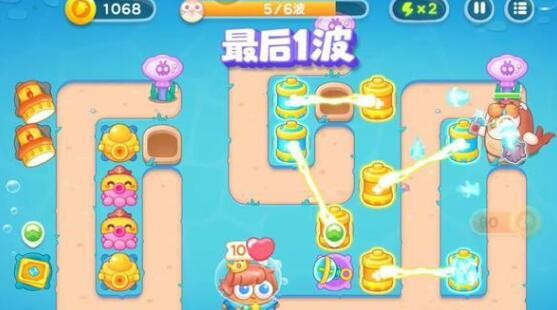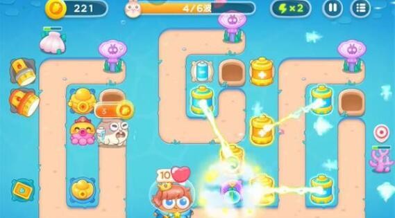 6、在右侧建造更多的章鱼塔进行输出,左侧建造泡泡塔进行控制,消灭掉所有的兔子即可完成本关挑战。