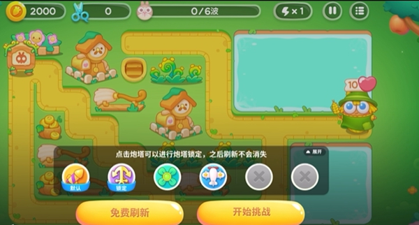 1、开局我们选择锁定船锚和火箭,之后就可以开始游戏了,其他的炮台都不是很需要。