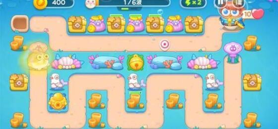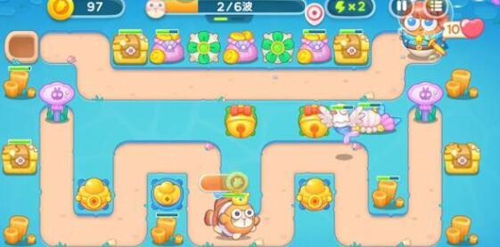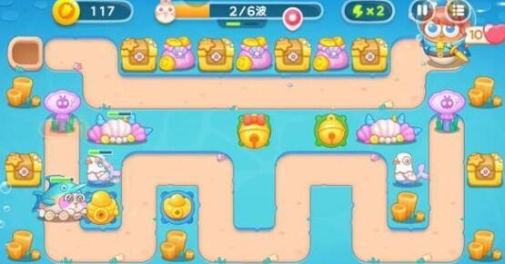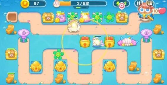 1、保卫萝卜4海的闺女第113关开局第一轮在左侧建造一个元宝塔对兔子进行输出,地图的正中央的位置建造一个铃铛清理障碍物。