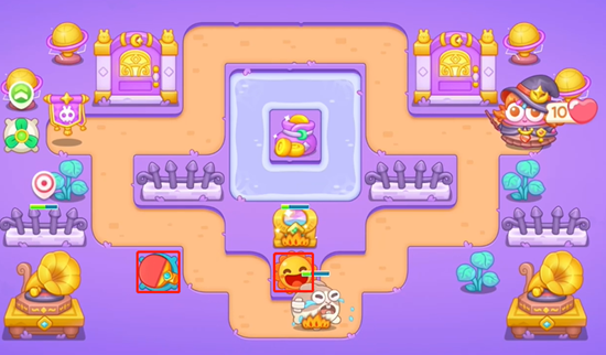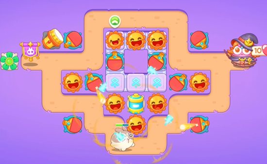 4、最后中间位置我们使用太阳花范围伤害,将伤害最大化,然后四周使用乒乓球来消灭残血兔子,轻松完成通关。