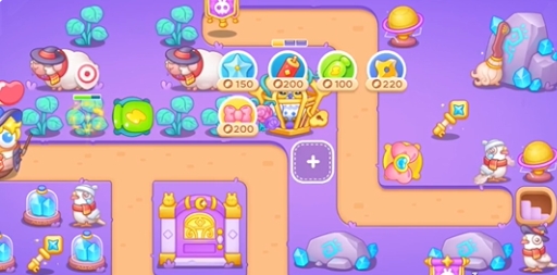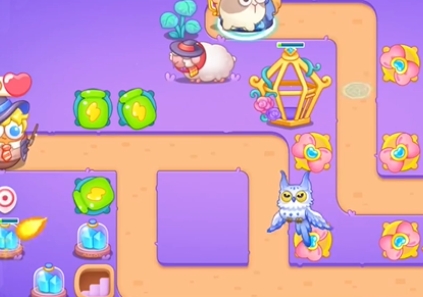 1、本关主要使用的炮台有蝴蝶结、瓶子和减速星星。
