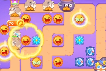 4、然后在中间补充并升级太阳花和减速星星炮台。